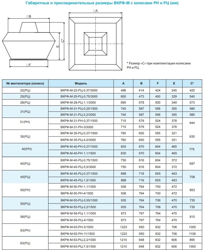 - рабочее колесо РЦ (производство ООО «РВЗ»/Ziehl-Abegg)